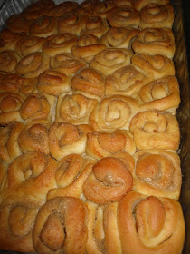 tüm malzemeyi hamur haline getirdim ve 1 saat dinlendirdim. sonra gazını çıkarttığım hamuru 4 parçaya ayırıp açabildiğim kadar ince açtım... Tahin şeker ceviz karışımını sürüp rulo haline getirdim ve 1 cm uzunluğunda kesdim ve yanayana döşedim.... tekrar 1 saat kabarmasını bekledim ve 1 saat fırında 170 derecede kızarana dek pişirdim....